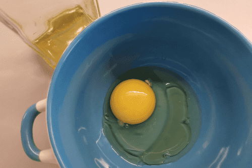 In a deep container, combine the egg and oil.