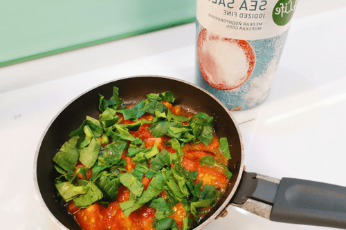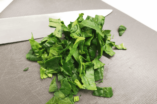 After 2 minutes, add the finely chopped garlic. Stir. After another 2 minutes, remove from heat.
