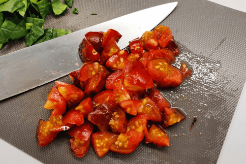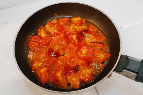 Fry the tomatoes in olive oil over high heat for 2 minutes.