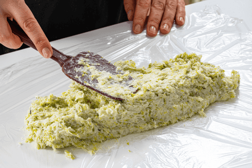 Place the resulting mixture on plastic wrap.