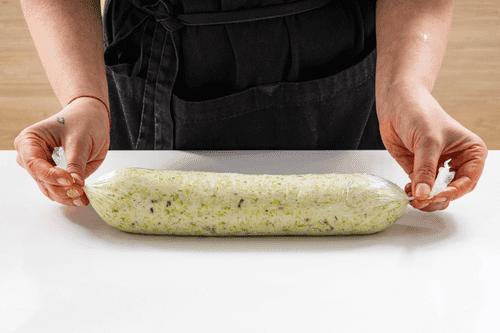 Wrap the lard tightly in film, forming a sausage shape, and tie the ends. Send the sausage to the freezer for a few hours.