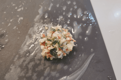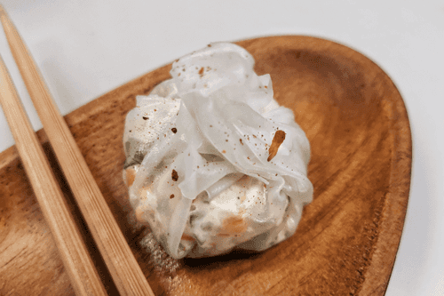 Dim sum is a refined dish of Pan-Asian cuisine that combines the crispy freshness of vegetables with the tenderness of crab sticks. This light and exquisite snack traces back to traditional Chinese dim sums, where small bites accompany tea ceremonies. Here, the classic format is reimagined: rice paper wraps the filling, creating a textural contrast. The flavor is refreshing, with subtle spicy notes of black pepper and piquant accents of chili. Mayonnaise adds creaminess and binds the ingredients together, while napa cabbage contributes freshness. Dim sum is perfect for a light snack or festive tables, and its elegant presentation makes it an excellent choice for buffets and parties.