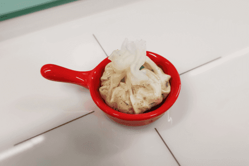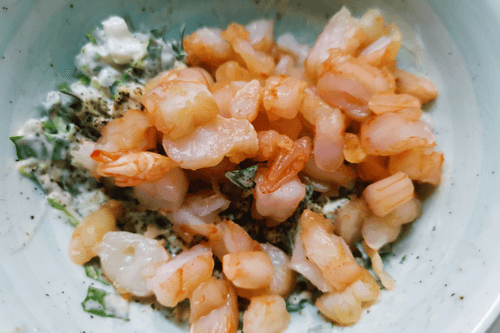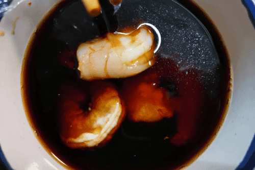 Mix chili and soy sauce. Soak the shrimp in it for 1 minute.
