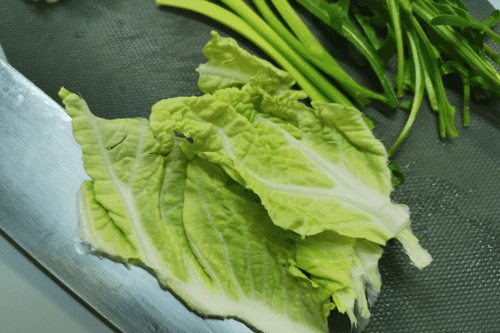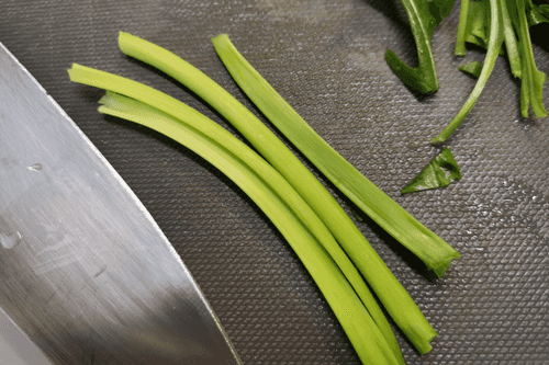 Cut the green onion stalks into lengths of about 7-10 cm.