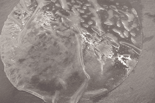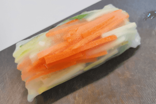 Soak the rice paper in drinking water for a few seconds and place it on a flat surface.