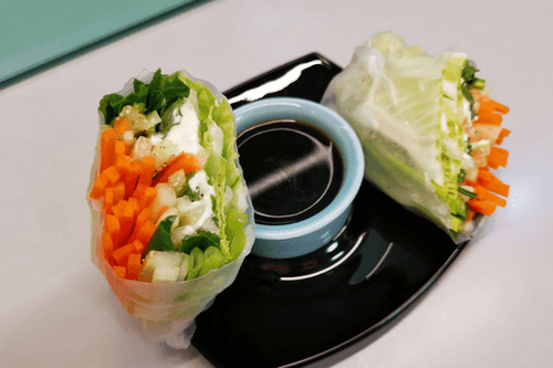 Vegetable spring roll is a light and exquisite dish of Pan-Asian cuisine that captivates with its freshness and harmony of flavors. Its roots lie in Vietnamese traditions, where rice paper serves as the base for treats filled with crunchy vegetables and herbs. This version of the spring roll is a symphony of textures: juicy cucumbers and carrots, creamy cheese, spicy green onions, and aromatic arugula create a pleasant balance. The light aftertaste of black pepper highlights the richness of the ingredients, while soy sauce adds an Eastern touch. A wonderful choice for those who appreciate healthy and refined dining. Ideal for a light snack or an elegant appetizer at a party.