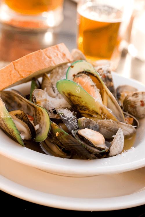 Add white wine, tamarind paste, fish sauce, coconut milk, cream, and butter. Cover and cook until the mussels open.