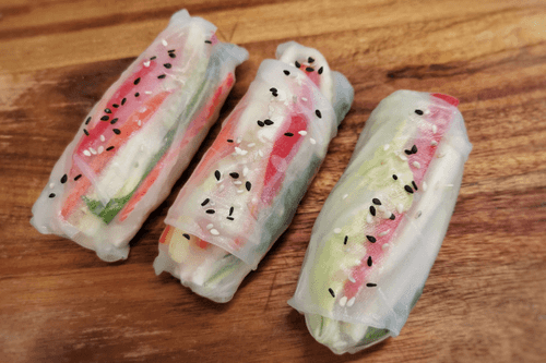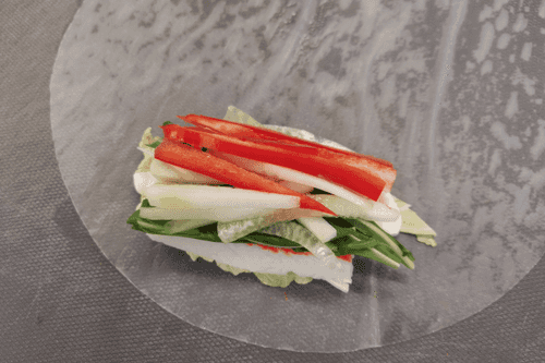 Вьетнамские блинчики – это легкая и изысканная закуска, воплощающая в себе свежесть и гармонию вкусов. Они появились во Вьетнаме как часть кулинарной традиции, основанной на балансе свежих овощей, нежных морепродуктов и тонкой рисовой бумаги. Хрустящие листы пекинской капусты, ароматный перец рамиро и освежающий огурец придают блюду свежий, сочный вкус, а крабовые палочки добавляют нежную текстуру. Заворачивая эти ингредиенты в эластичную рисовую бумагу, получается аппетитный конвертик, который можно украсить кунжутом. Майонез придаёт легкую сливочность. Блинчики можно подавать как закуску на праздник или в качестве лёгкого перекуса в жаркий день. Это идеальное сочетание свежести и утонченного азиатского вкуса.