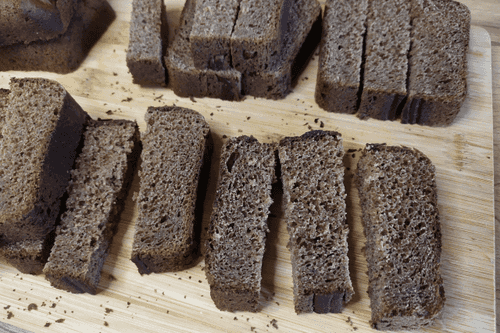 Slice the bread crosswise into pieces about 1 cm wide.