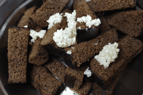 Garlic croutons from Borodinsky bread