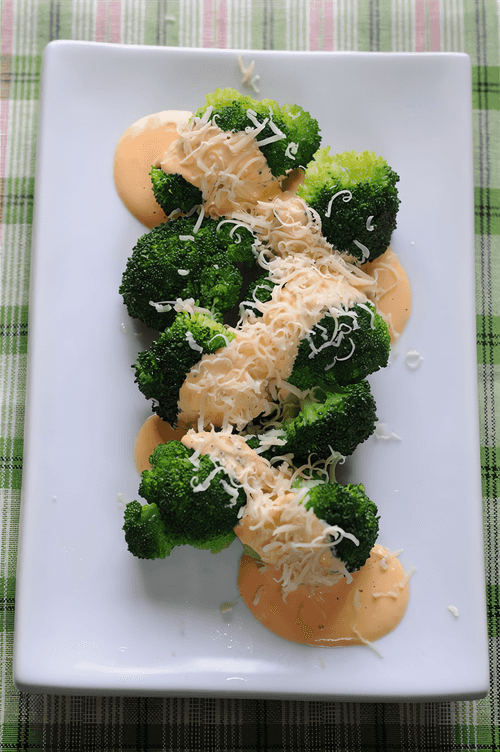 Broccoli with cheese mousse is an exquisite dish of French cuisine that combines the delicate texture of cheese with the light freshness of broccoli. The origins of such a combination trace back to the classic gastronomic traditions of France, where the mastery of sauce and mousse preparation has been perfected. The mousse, made from light 'Lambert' cheese, cream, and egg yolk, achieves an airy consistency that complements the softness of broccoli and the savoriness of lightly salted salmon. A splash of lemon juice and olive oil enhances the dish's freshness, making it ideal for a light dinner or an elegant appetizer. This recipe is suitable for those who appreciate harmony of flavors and the sophistication of French cuisine.