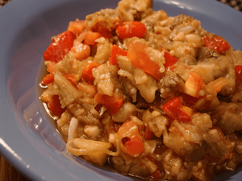 Bessarabian eggplants are a bright and aromatic dish of Moldovan cuisine, infused with the spirit of Bessarabia. It embodies the richness of local vegetables and a traditional baking method that enhances their natural sweetness and flavor intensity. Slightly smoky eggplants, sweet peppers, and juicy tomatoes create a unique texture combination, while the addition of red onion, garlic, and balsamic vinegar adds piquant notes to the dish. Coarsely chopped vegetables make the taste rich and fresh, while fragrant sunflower oil binds the ingredients together. This dish can be served as an independent appetizer or a side to meat, and paired with fresh bread it becomes a true culinary delight. Bessarabian eggplants are a harmony of simple products and expressive flavors that can transport you to sunny Moldova.