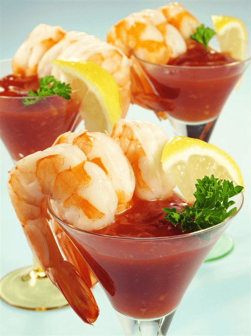 Shrimp cocktail with vodka, celery, tabasco and ketchup