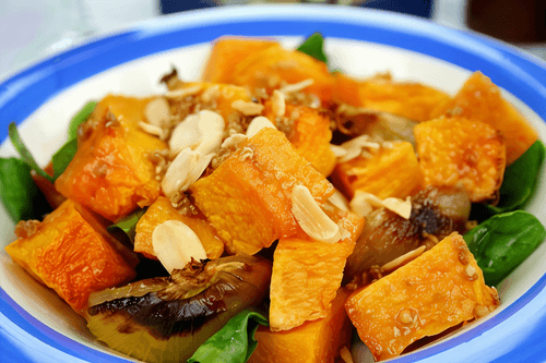 Baked Sweet Potato and Pumpkin with Brown Sugar and Nutmeg