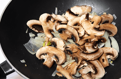 Heat a skillet over high heat with butter and vegetable oil. Add the sliced mushrooms, stir, shaking the skillet slightly, and cook for 4-5 minutes until the mushrooms are browned, then remove from heat.