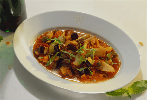 Classic caponata is one of the most famous dishes of Sicilian cuisine, combining the rich flavors of the Mediterranean. Originally appearing as a peasant dish, caponata quickly gained popularity due to its simplicity and amazing balance of sweet and sour notes. Eggplants fried to golden softness soak up the aroma of garlic and onion, while tomatoes, capers, and wine vinegar add a bright tanginess. Fresh basil leaves fill the caponata with freshness, and pine nuts bring a delicate crunchy finish. It can be served warm or cold—caponata pairs excellently with crusty bread, pasta, or meat dishes. It's not just an appetizer but a true gastronomic journey to sunny Sicily!