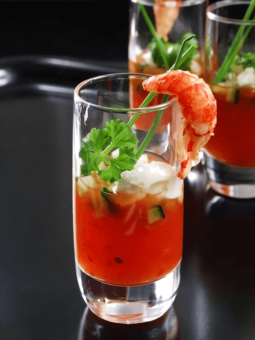 Grilled marinated shrimp with sangrita and avocado is an exquisite blend of Mediterranean flavors, where the freshness of seafood harmoniously intertwines with spicy and tangy notes. The dish's origins can be found in the traditions of Spanish and Italian cuisines, where seafood is often paired with aromatic marinades and sweet-sour sauces. The shrimp are first marinated in a salt solution, making them incredibly tender, then absorb the aromas of garlic, parsley, white wine, and olive oil. Grilling gives them a light smoky crust, while the addition of sangrita and avocado makes the dish refreshing and rich. It can be served as an elegant appetizer at summer parties or as a main course accompanied by fresh vegetables and a glass of white wine.