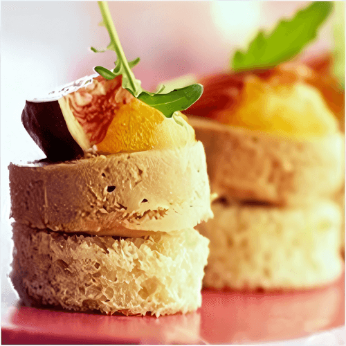 Foie gras with mandarin confit is an exquisite dish of French cuisine that embodies the harmony of delicate texture and refined flavor. Foie gras cooked with mushrooms and cognac reveals its rich, intense aroma, while the sweet, slightly citrus mandarin confit adds an elegant fruity note, creating a unique flavor contrast. The origins of this dish trace back to the traditions of French gastronomes who sought the perfect combination of ingredients. It is ideally suited for festive dinners and special occasions, served chilled to highlight all the subtle flavor nuances. Each piece of foie gras melts in the mouth, leaving a lingering taste of luxury and celebration.