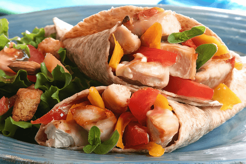 Place the chicken on the tortillas and top with the avocado mixture, salsa, and shredded cheddar. Fold the tortilla in half and serve immediately.