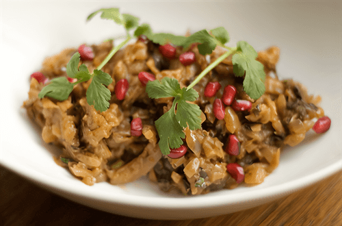 Ajapsandali with pomegranate seeds