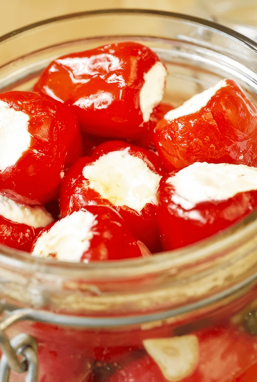 Appetizer of Navarrese pique peppers stuffed with goat cheese