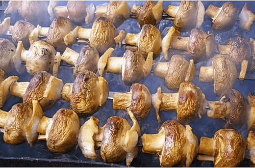 A smart shashlik of wild mushrooms marinated in lemon juice and garlic, and new potatoes. But we, remembering the advice of technologists, still advise to lightly boil the mushrooms. Details here.