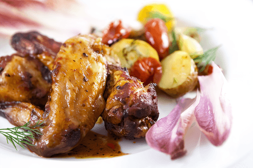 Marinate chicken wings for 3-4 hours. To prepare the marinade, mix soy sauce with honey, curry, and lemon juice.