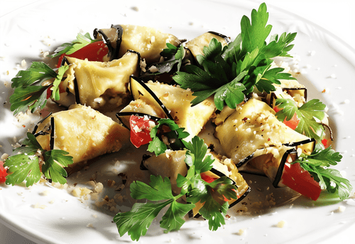 Eggplant rolls with sun-dried tomatoes, prosciutto, and mozzarella are an elegant dish of Italian cuisine that embodies the richness of Mediterranean flavors. Thin slices of eggplant fried to a golden crust serve as a soft base for delicate prosciutto, stretchy mozzarella, and aromatic sun-dried tomatoes. Their combination creates a harmony of salty, sweet, and creamy tastes. These rolls are perfect for both festive tables and exquisite dinners with loved ones. Historically, eggplant is widely used in Italian gastronomy, and its union with meat and cheese pays homage to regional traditions. Baked rolls are served hot and can be complemented with fresh herbs and a drizzle of balsamic cream for depth of flavor. This dish enchants with both its aesthetics and the sophistication of culinary execution.