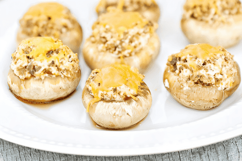 Mushroom caps stuffed with cheese and meat filling