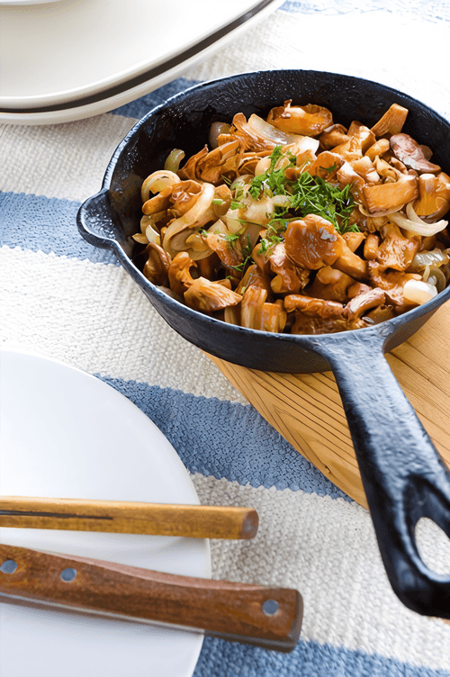 Push the fried mushrooms aside and add the remaining mushrooms and a small amount of vegetable oil. Fry until golden and browned. Taste to assess the salt amount. Add salt and butter if necessary. Generously pepper.