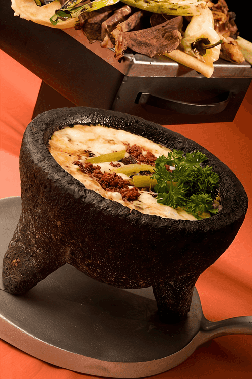 Cheese and mushroom fondue with kirsch is a refined dish of European cuisine that combines the rich flavor of Gruyère, the aroma of white wine, and the delicate texture of mushrooms. Originating from Switzerland, fondue is traditionally prepared in a special pot where diners dip pieces of bread into the hot, gooey cheese mixture. The addition of kirsch, an aromatic cherry brandy, adds a piquant touch and sophistication to the dish. Mushrooms soaked in kirsch bring a forest depth of flavor while nutmeg and freshly ground black pepper highlight the complexity of the composition. It’s the perfect dish for cozy evenings when you want to share warmth and taste with loved ones while enjoying the harmony of ingredients and the traditional ritual of communal dining.