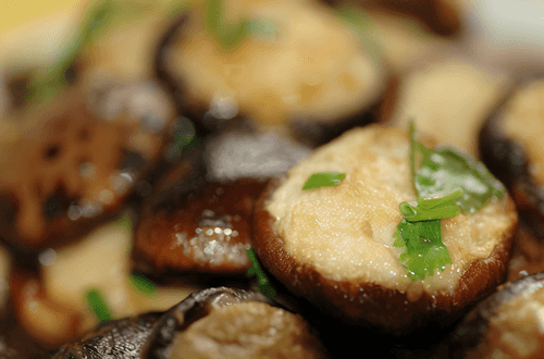 Mushroom caps with smoked mozzarella and thyme