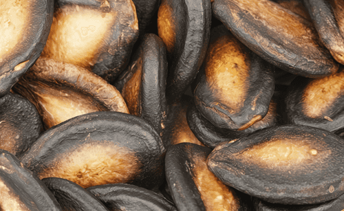 Spread the seeds on a baking sheet and roast for 10-20 minutes until golden brown. The seeds may start to open - this is very good. About 5 minutes before finishing roasting, sprinkle the seeds with garlic and mix.