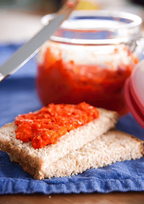 Lenten spread of roasted peppers, sunflower seeds and chili
