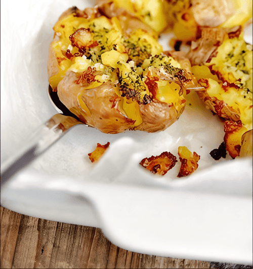 Spicy potatoes are a refined European dish that combines the tenderness of young potatoes with rich aromas of garlic, orange zest, and butter. This cooking method—first boiling and then baking—achieves the perfect balance between softness inside and a crispy golden crust outside. The dish has a bright, slightly citrus flavor with warm spicy notes from black pepper and dried parsley. It pairs excellently as a side for meat and fish dishes but can also serve as a complete standalone treat. Spicy potatoes perfectly complement a festive table or a cozy family dinner, offering enjoyment and gastronomic pleasure.