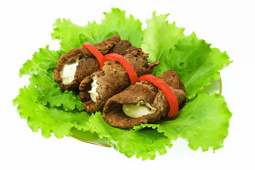 Beef rolls with soft cheese and sweet pepper