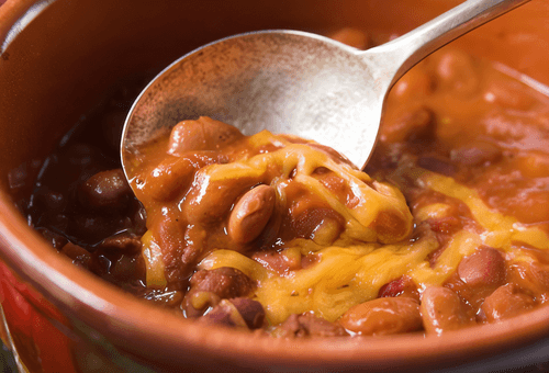 Quick snack of beans under a cheese crust