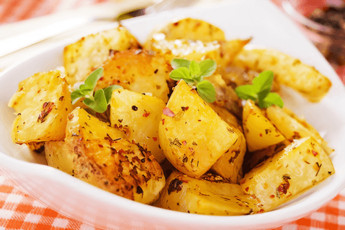 Wash the potatoes well and dry them. Cut into small pieces (you can peel them first if desired) and place in a bowl. Drizzle with olive oil, chili oil, salt, and pepper. Mix well and spread in an even layer on a baking sheet.