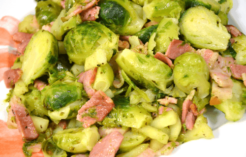 Brussels sprouts with bacon and apples is a refined dish of European cuisine that combines the tenderness of vegetables, crispy bacon, and a light tartness of apples. Popular in Belgian gastronomy, Brussels sprouts become tender when boiled and then absorb the aroma of bacon and fresh thyme. The addition of apples gives the dish an interesting sweet-sour note, making it particularly balanced in flavor. It is an ideal side dish for meat dishes or a standalone warm meal that warms you on cool days. This culinary union of flavors demonstrates the European love for harmonious combinations and fresh seasonal ingredients. Serve hot, enjoying the richness of textures and deep flavors!