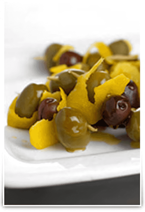 Olives marinated in vodka, gin and vermouth