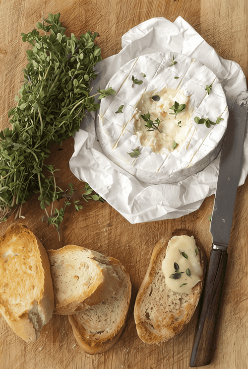 Baked Camembert with Thyme, Garlic and Garlic Bread
