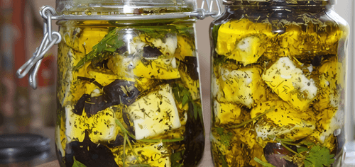Then, pour everything with lemon juice or 2 tablespoons of wine vinegar per half-liter jar. Finally - with olive oil, to completely cover the cheese.