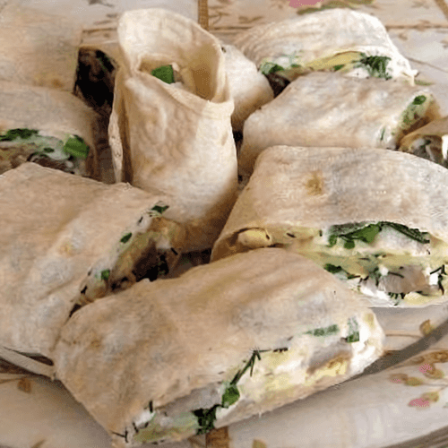 Roll the lavash into a roll and wrap it in plastic wrap. Place it in the refrigerator for at least 1 hour.