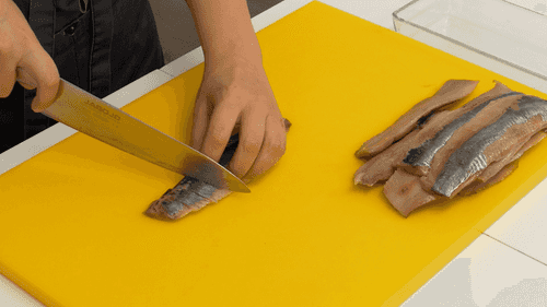 Slice the herring fillet into thin pieces, pour with sauce, and sprinkle with finely chopped herbs. Serve with potatoes.
