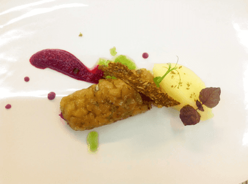 Muksun tartare with beetroot puree and Thai lime sorbet