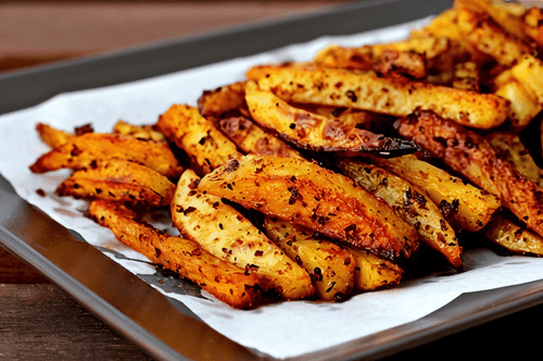 Dietary French fries are a light and healthy alternative to classic fast food. Its roots trace back to American cuisine, where the pursuit of healthy eating has spawned many low-calorie variations of popular dishes. Here, the crispy crust is achieved not by frying in oil but by baking with egg whites and a light layer of olive oil. The flavor remains rich—potatoes retain their natural sweetness while rosemary adds exquisite spicy notes. These fries can be served as a standalone dish or as a side that pairs excellently with yogurt sauces. Perfect for those watching their figure but not wanting to give up on pleasure!