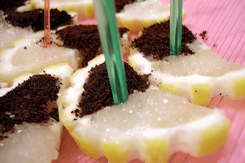 Lemon slices with coffee
