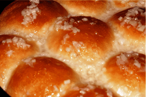 If desired, the pampushki can be brushed with an egg wash before baking to make them golden.