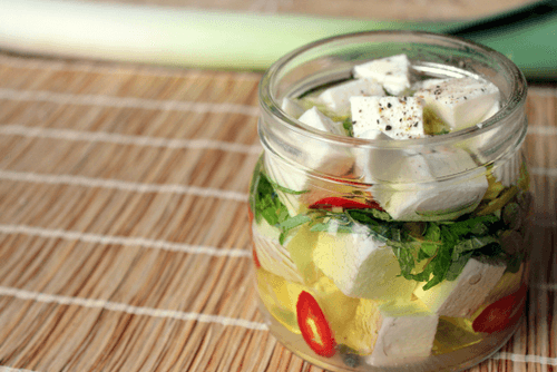 Pour olive oil to cover the cheese. Leave for at least a day.