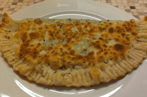 Place greens with cheese on one half, cover with the other half, and pinch the edges with a fork.